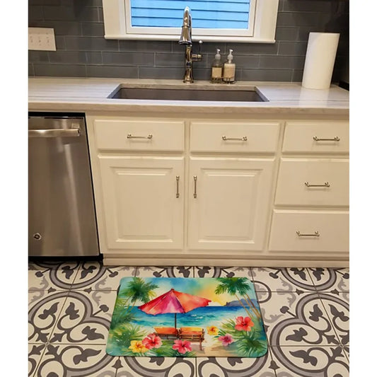 Hawaii Hawaiian Hibiscus in Watercolor Memory Foam Kitchen Mat Machine Washable AntiFatigue Mat Cushion Comfort Bath Mat or Kit