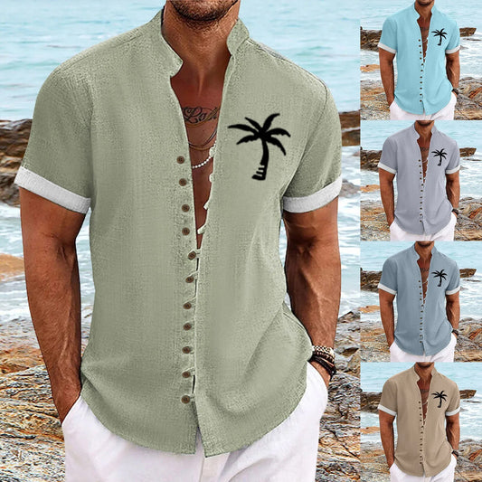 2025 Summer New Hawaiian Men'S Shirt 3d Printed Coconut Tree Breathable Four Sided Elastic Short Sleeve Shirt Retro Button Top