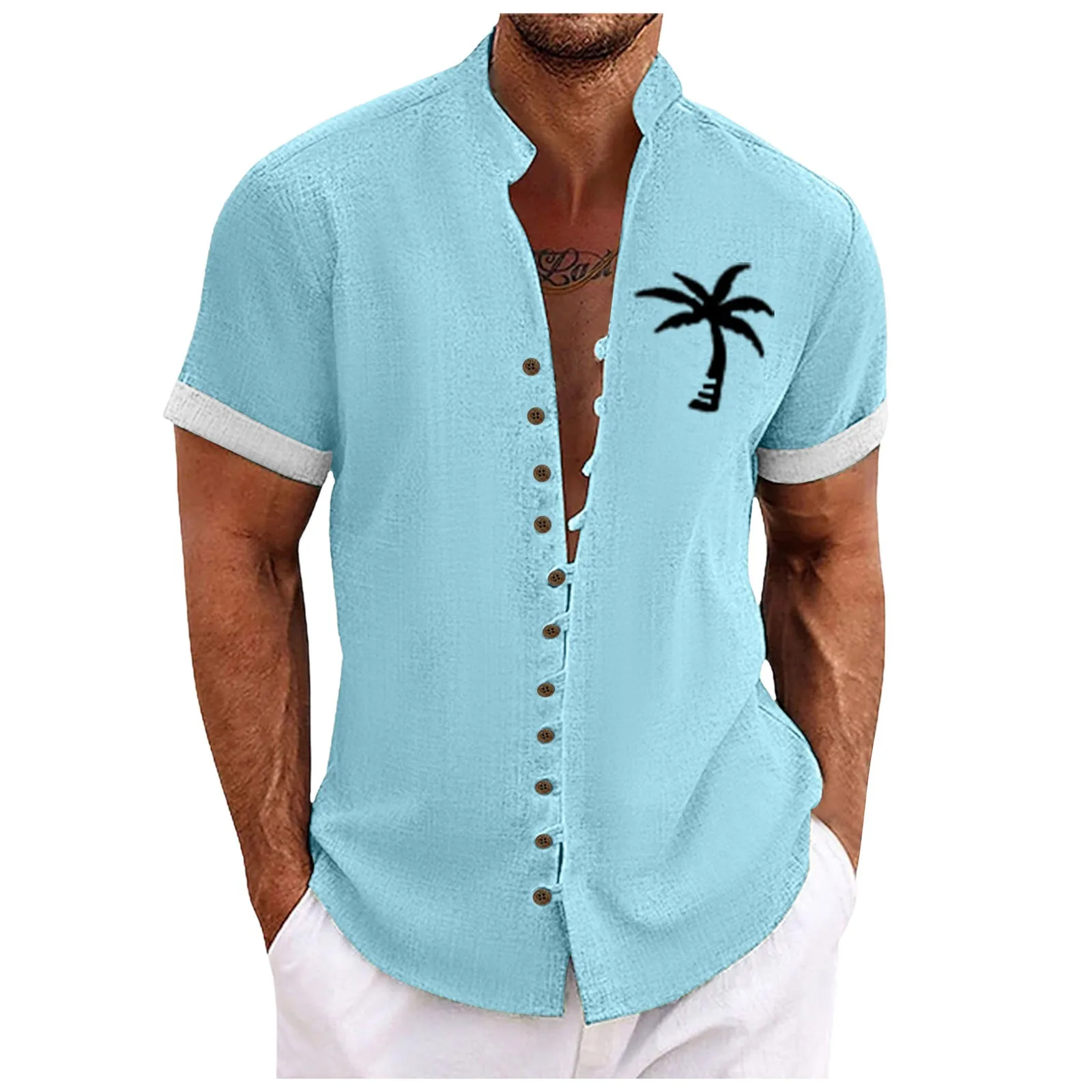 2025 Summer New Hawaiian Men'S Shirt 3d Printed Coconut Tree Breathable Four Sided Elastic Short Sleeve Shirt Retro Button Top