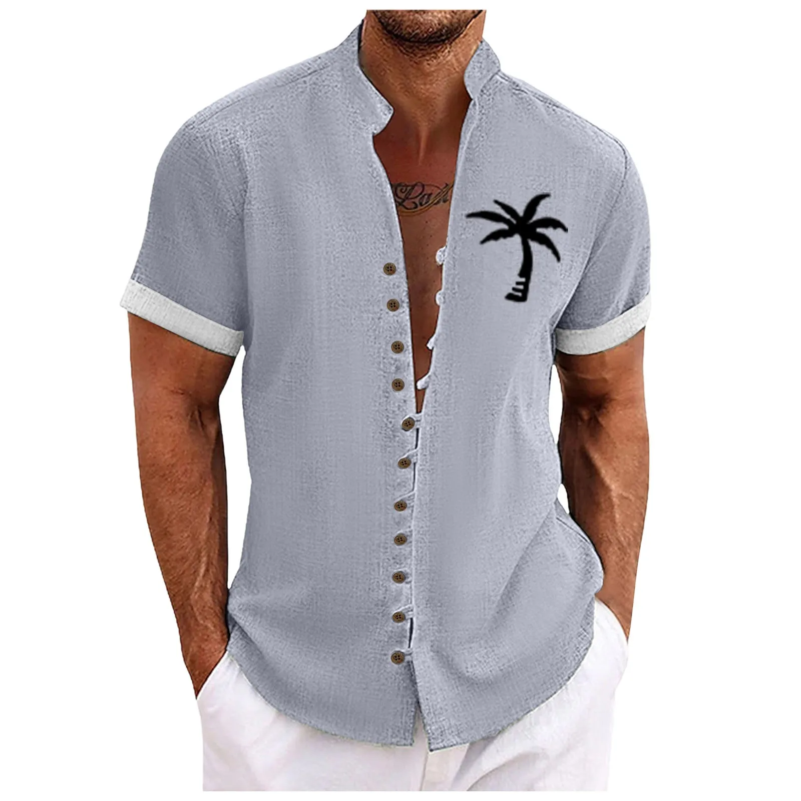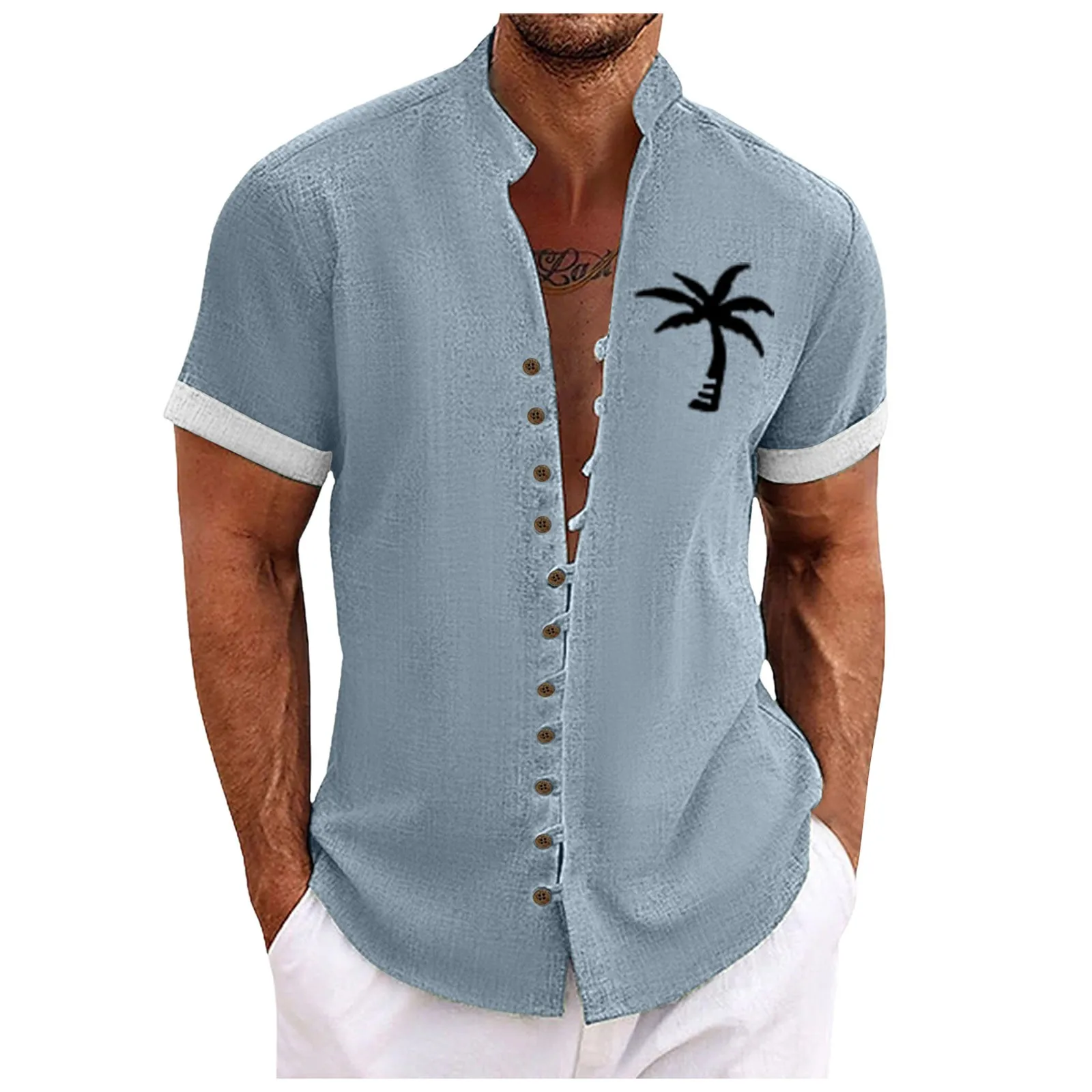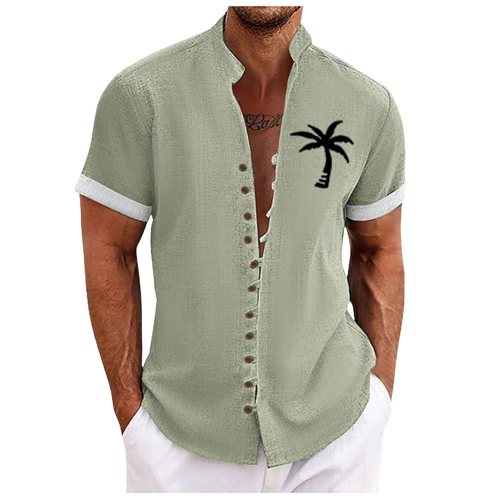 Mens Summer Solid Color Style Vintage Button Up Short Sleeved Shirt Short Sleeved Top